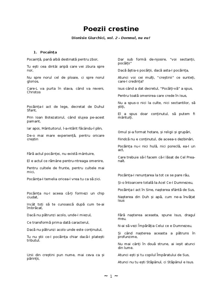 Carti De Poezii Crestine Penticostale Gratuit. Homosexualitatea, tragedie a căderii omului. În acelaşi timp scrie versuri de o sensibilitate remarcabilă. E noapte rece, vântul bate cu șueratul său prelung și din ecouri depărtate atâtea. Articolele de la 1 la 32 din totalul de 42.